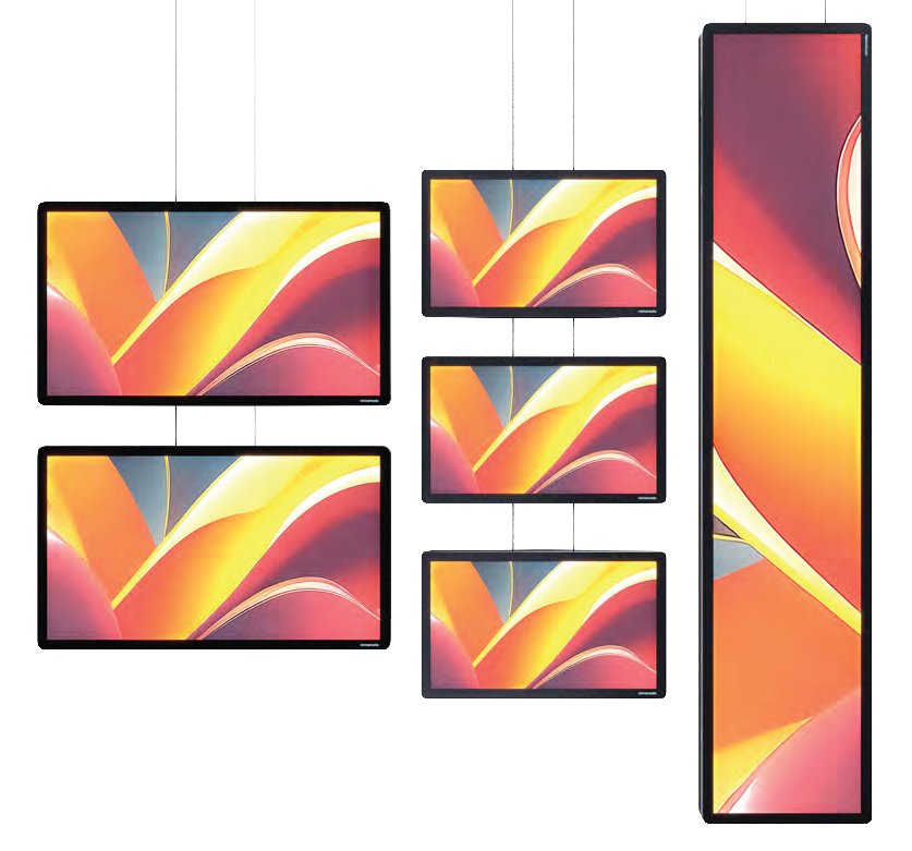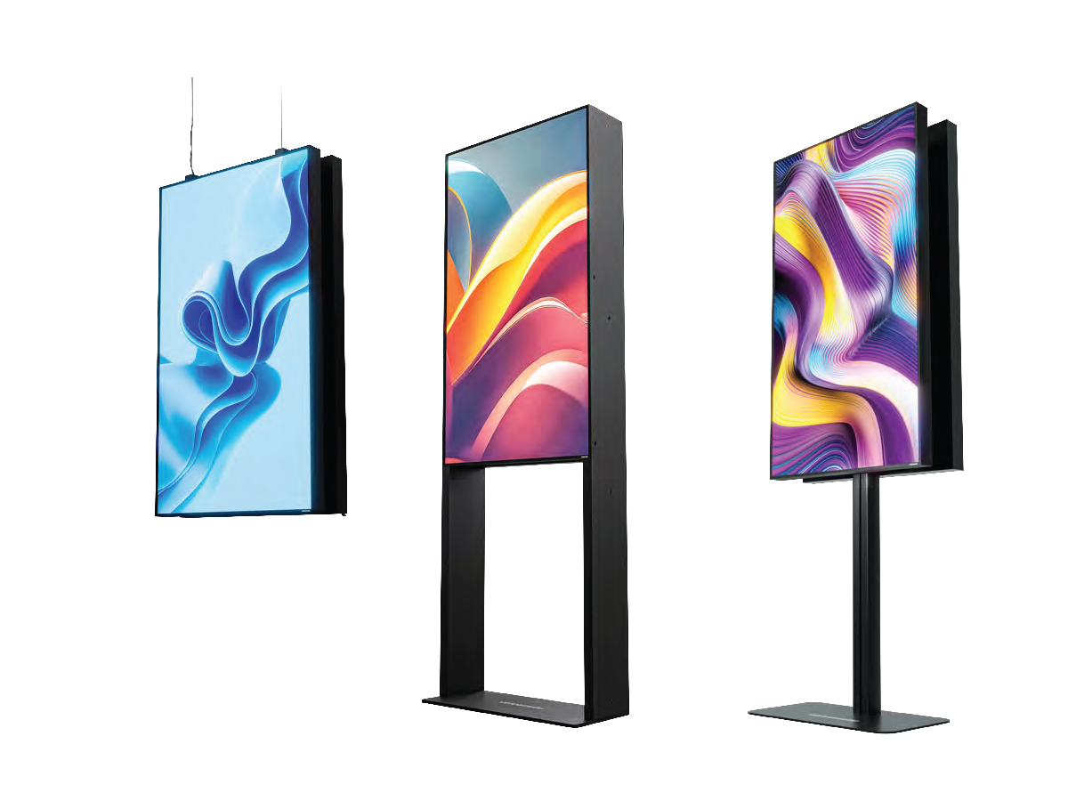 Vitrinemedia leverer som eneste produsent skjermer for 24V i format A3, A2 og som banner. Ingen player boks, hdmi- eller strømkabler. Android software og all nødvendig hardware er bygget inn. Alt vi trenger er wifi så forteller skjermen budskapet.